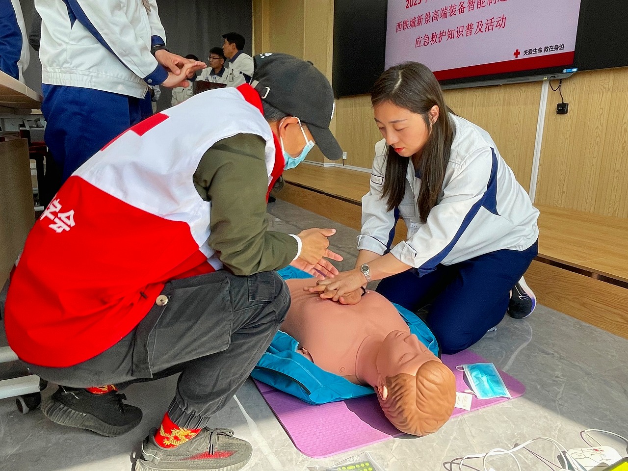 培訓中,授課老師通過理論和實操相結合的方式,詳細講解了心肺復蘇術急救法的應用背景和操作流程,對“AED體外除顫儀”使用的原理、目的、適應癥、禁忌癥、操作規范、注意事項等方面進行了解釋說明,并利用人體模型進行了“AED體外除顫儀”的操作演示。